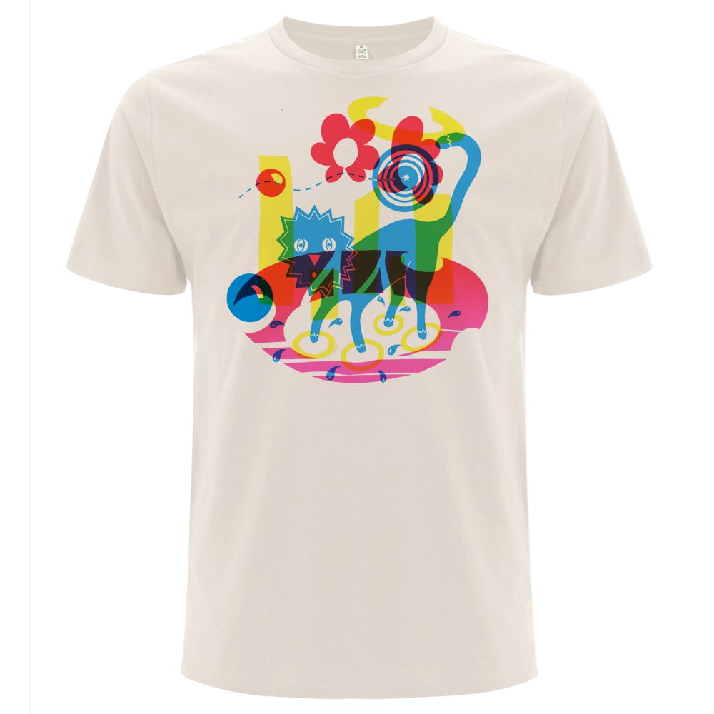 Die "Elektroschock-Katze" im dreifarbigen Stil eines MONOPRINTS.