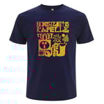 - GELB-ORANGEROT (Verlauf) Druck auf NAVY BLUE Shirt