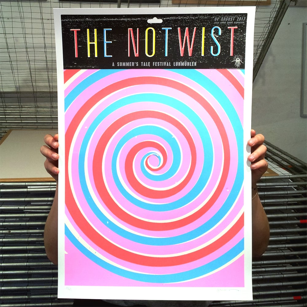 Editions of 43 signed and numbered sheets each. Final colour is "glow in the dark" so even if you turn off the light, the NOTWIST shines on...