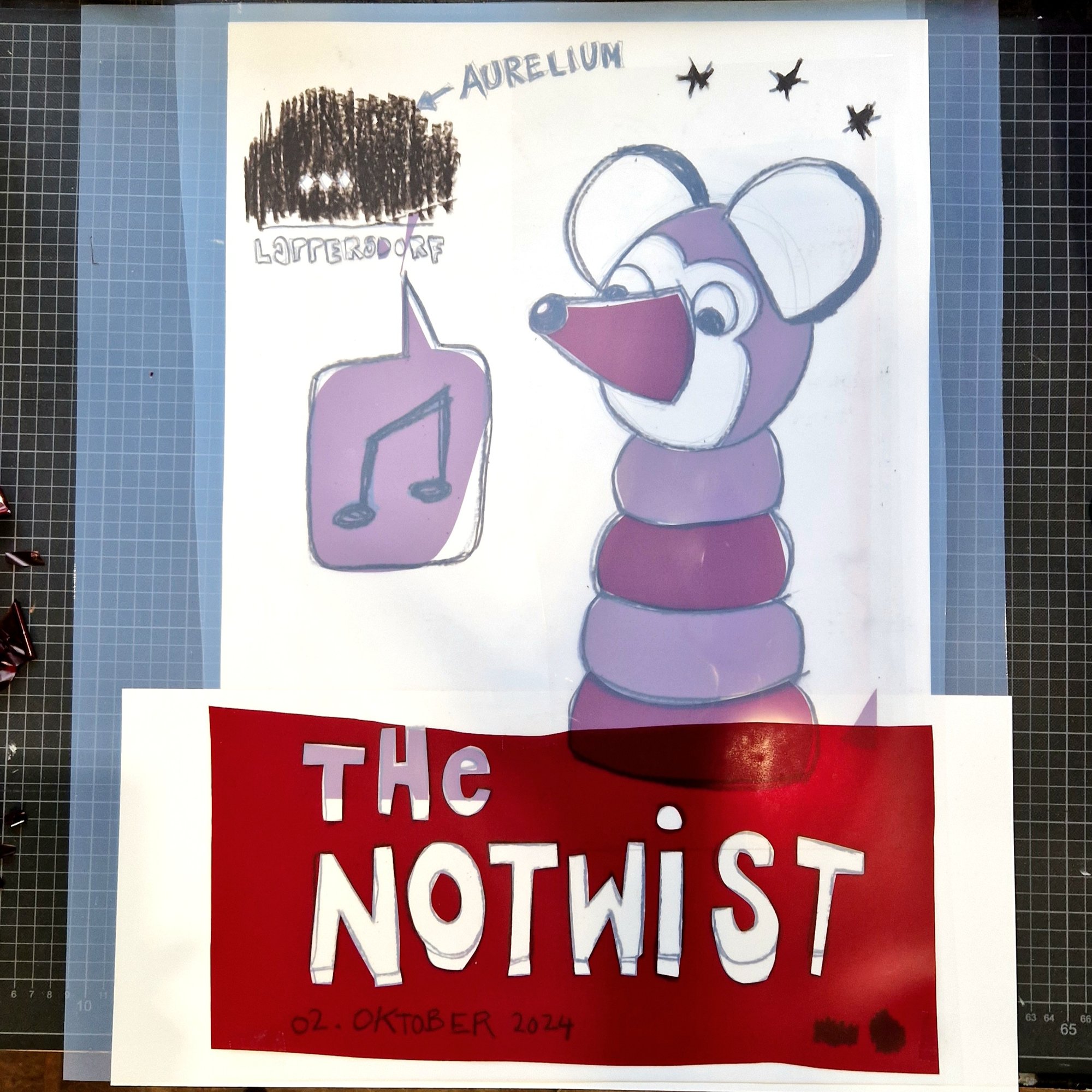 Naive artwork on this, all layers prepared very spontaneous and all by hand with crayon, pen and rubylith cutting mask. It's also a hommage to an image I would call the initial (and maybe most important) work from where it all started for Señor Burns: