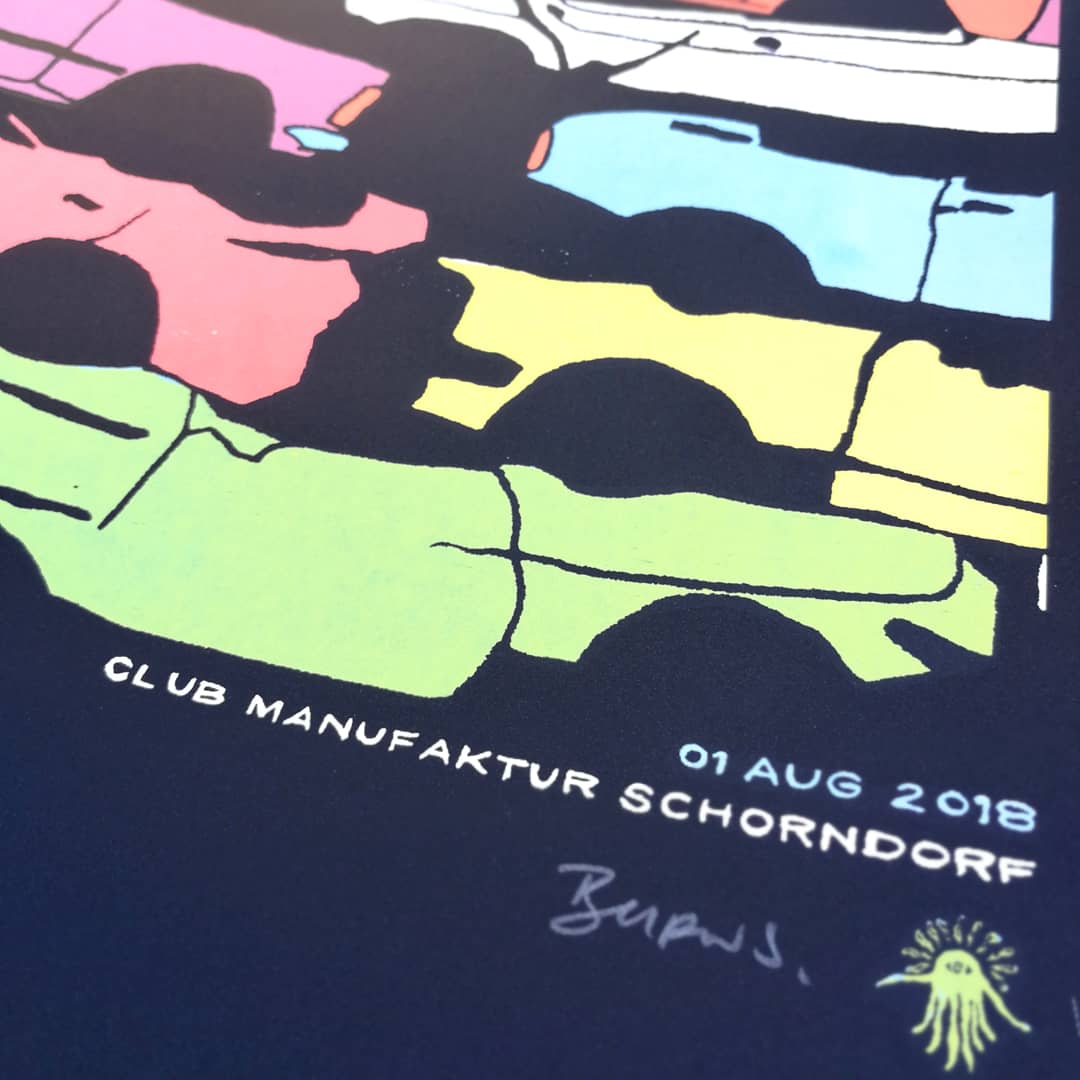Official gig poster for their appearance at Club Manufaktur Schorndorf on Aug 1st, 2018.