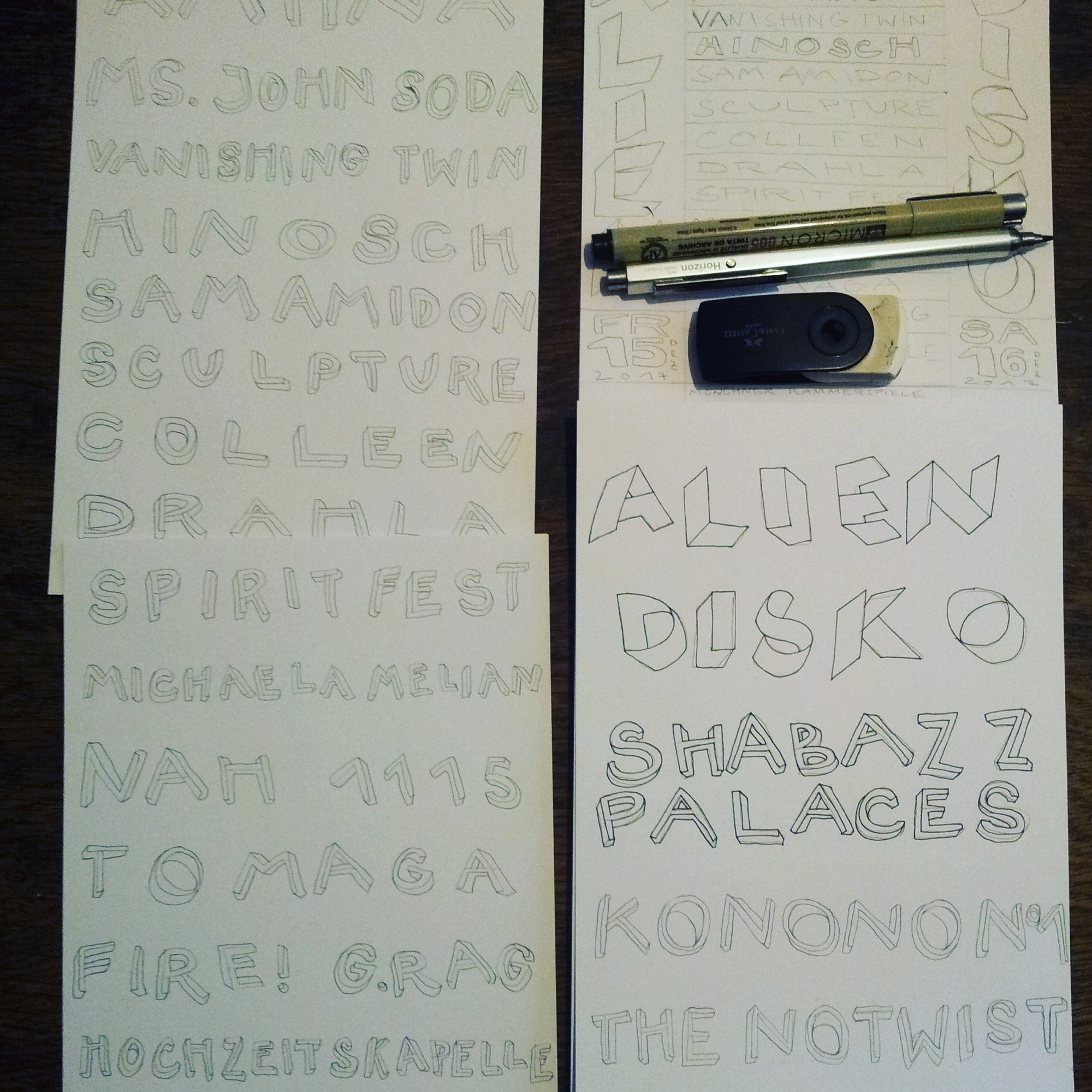 The Festival will take place on December 15th & 16th at Münchner Kammerspiele. As this Festival is all about the music and the bands, I decided it's just fair enough to make them the main objects in this poster. So this time it's a lot of lettering and typeplay and it's all handwritten! No computer type was used in this Gigposter!