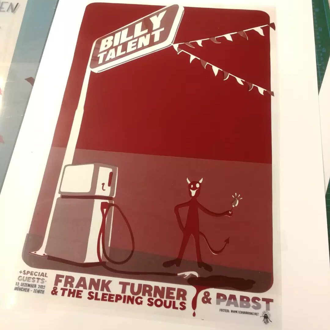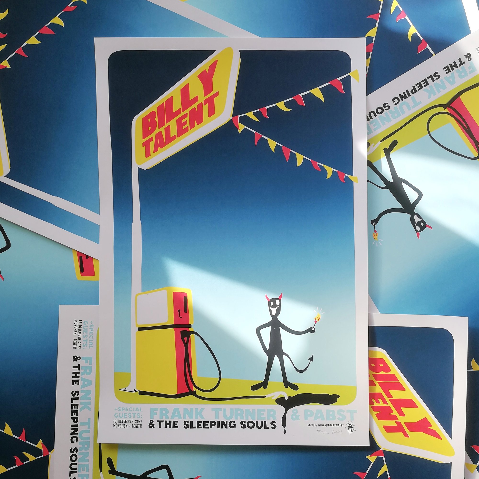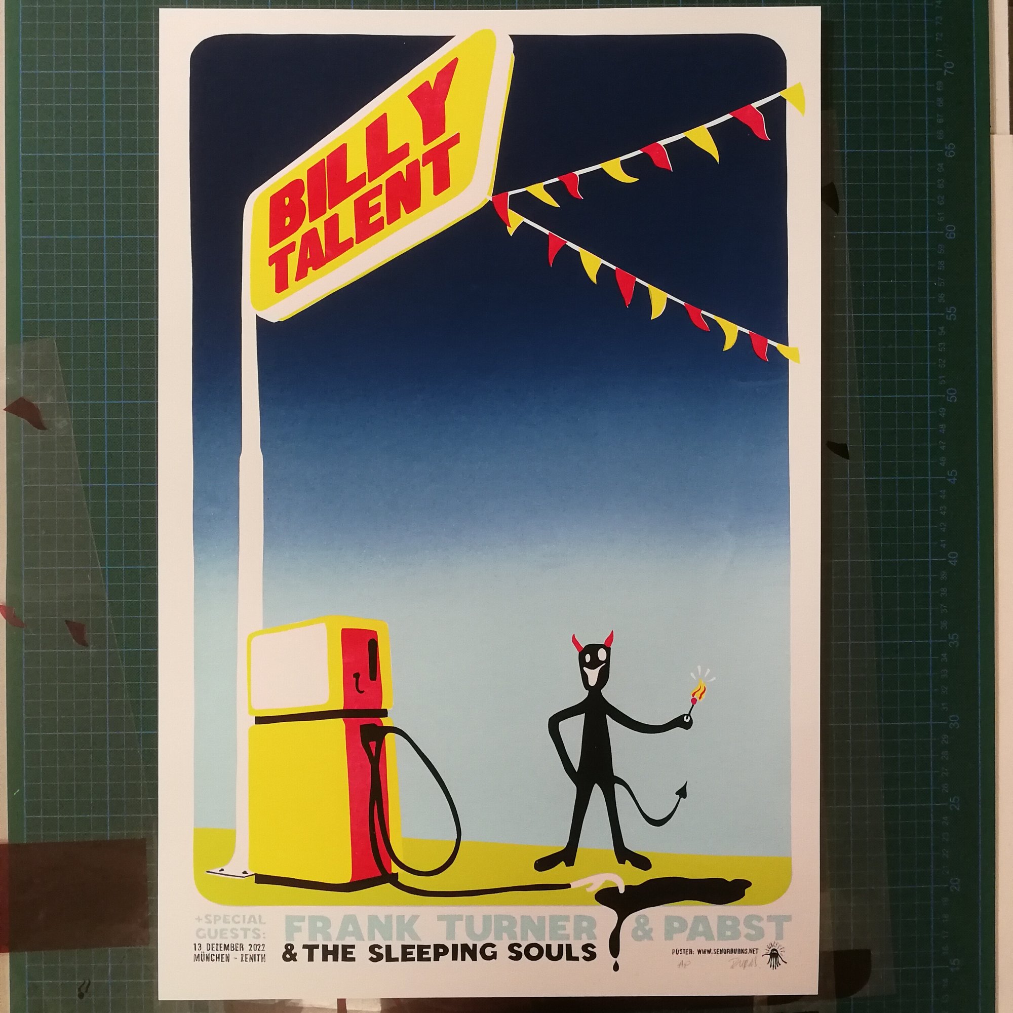 My final gig poster 2022 for the appearance of BILLY TALENT with FRANK TURNER and PABST at Zenith, Munich.