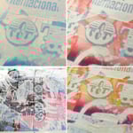 Der Ausschnitt eines Fotos von einer Litfaßsäule im katalonischen Girona. Überlagerte und abgerissene Plakate ergeben eine wilde Collage.