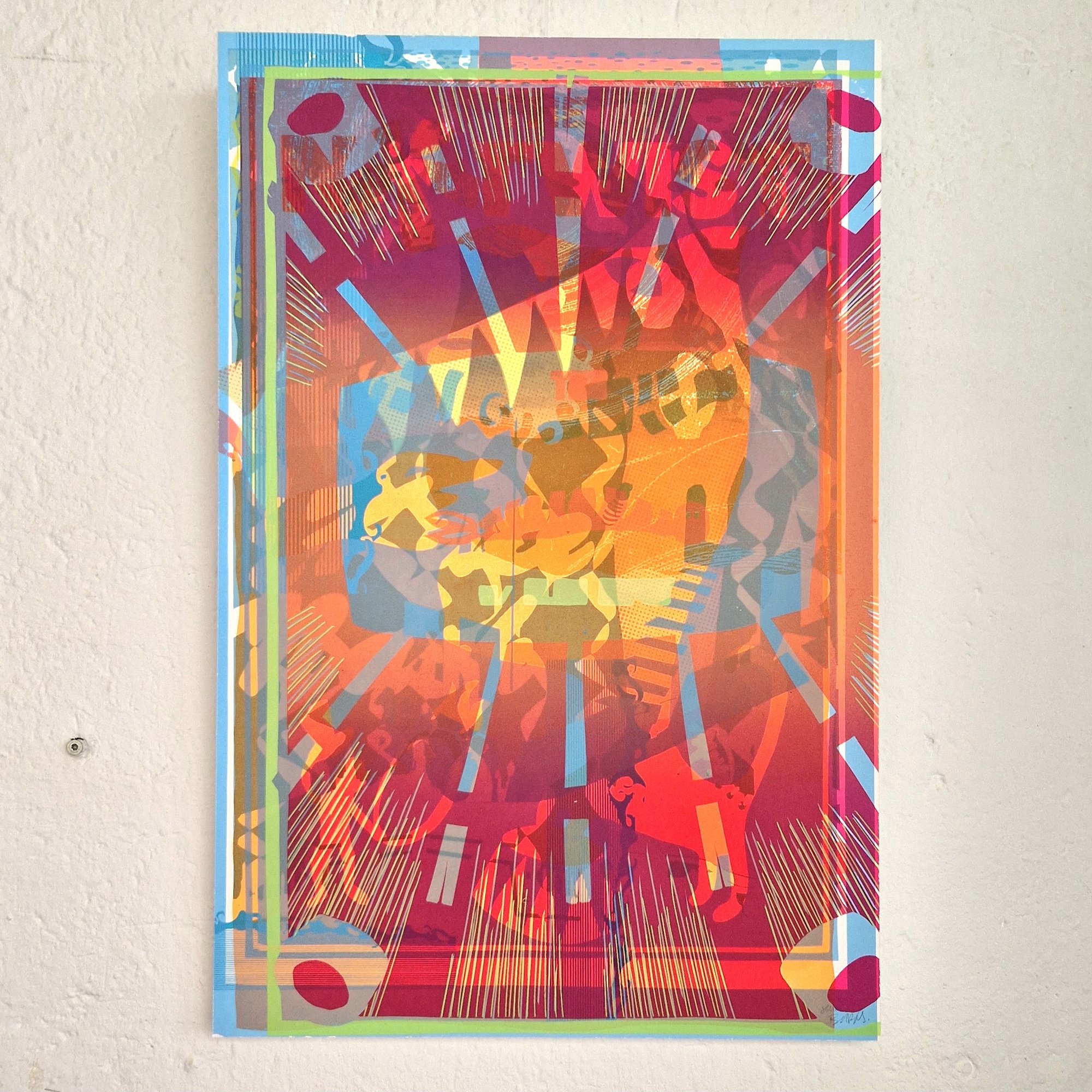 This is a one-of-a-kind art print that is the product of the screen-printing process, mixing-up from 3 to 15 different layers, printed within months or years!