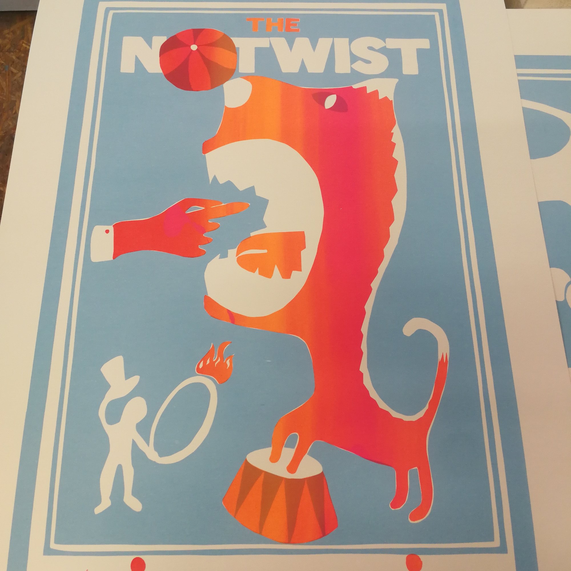 Three handcut layers (Rubylith) and the red-orange-pink screen was not only printed as a split-fountain: I also sparkled ink over the screen from time to time. So each print is unique, not one looks like the other!